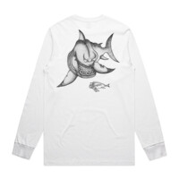 NEW Grumpy Shark Long-Sleeved Tee - featuring Milan’s artwork, ideal for cooler days and any fishing adventures.